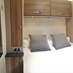 Self-containedLayout:  Bed over the cab, Rear island bed