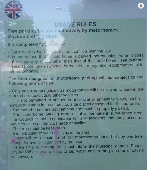 The huge network of Aire de Service or Stellplatze seen in France and Germany is not yet developed as historically people just stopped wherever they felt safe. Although motorhoming in Spain and Portugal has long been popular, the numbers of people motorhoming now has put pressure on many long established but unofficial overnight parks and the Spanish government has moved to bring some order to this.
