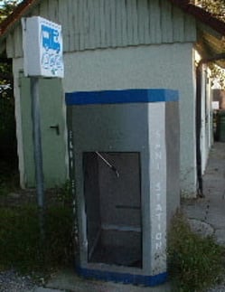 A third popular model of service unit is the 'ST-SAN'. These are stainless steel and have a “drive-over” drain in the ground a couple of metres away. Open the lid then drive over the drain to empty your tanks. They can be used for both grey and black water. There will be a knob on the front panel of the box for flushing the drain, and on the side will be a coin operated fresh water supply. Most stellplatz service points are frost protected but if you’re touring in winter you may find some of them turned off if they’re not protected against freezing.