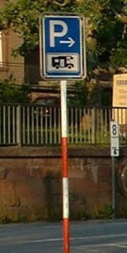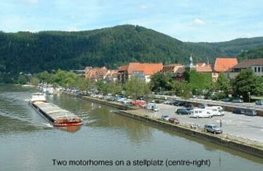 A motorhome icon will identify a stellplatz, and these will often have parking or camping charges per hour or per night displayed. There is generally a limit to how long you may stay at a stellplatz and this is normally displayed on a sign. Expect this to be in the order of two or three days/nights. Sometimes a stellplatz may only be available on certain days of the week. Again this limitation will be displayed. Many stellplatz are run by local councils, but there are also privately run sites at service stations, marinas, vineyards, and even alongside campsites. They vary in their attractiveness from tidy, picturesque and quiet park-like areas to active, noisy places at the back of busy service stations.